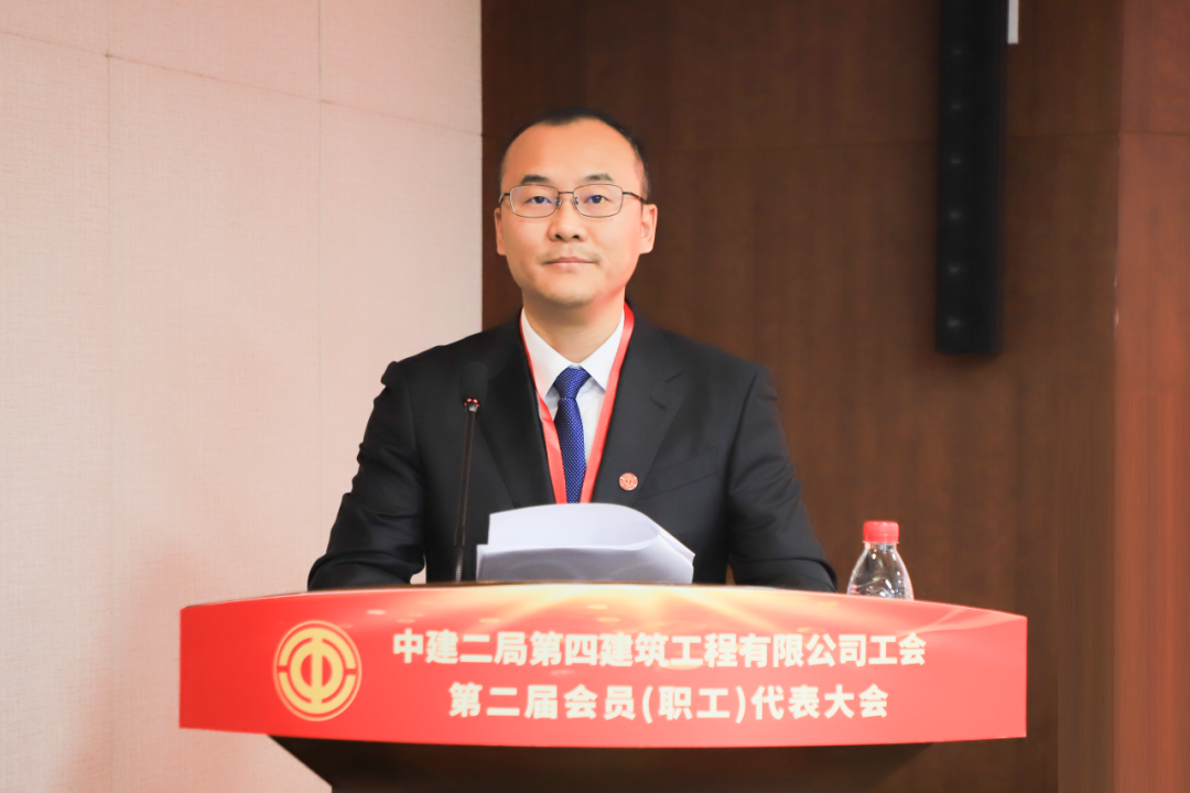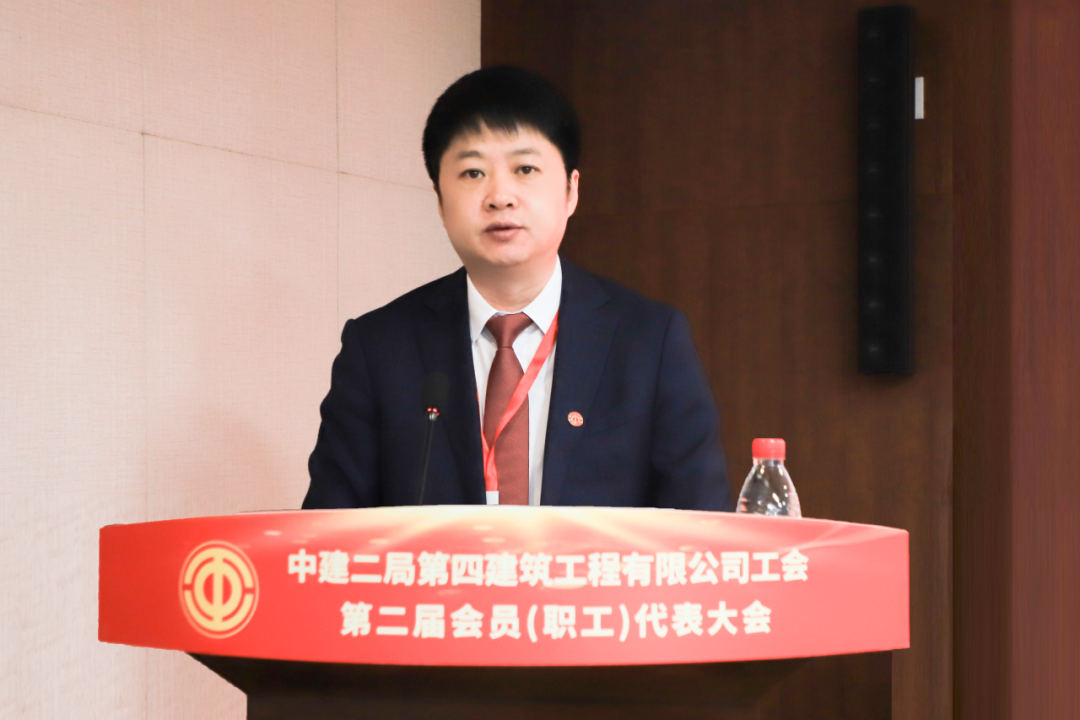 杜建波代表中建二局工會向大會的召開予以祝賀。他表示,四公司工會堅持以習近平新時代中國特色社會主義思想為指導,深入學習貫徹習近平總書記重要講話和指示批示精神,始終堅持融入中心、服務大局,在工會系統多個領域起到示范帶頭作用。四公司工會和廣大工會干部要不忘初心、牢記使命,強化思想政治引領,持續深化中國工會十八大精神的實踐運用,把牢工會工作正確方向。深刻把握工會組織在黨和國家工作大局中的使命任務,緊密圍繞國家重大戰略、重大工程、重大項目、重點產業,聚焦局“高品質履約年”各項目標任務,履行央企社會責任,深化產業工人隊伍建設改革,堅持服務職工為本,滿足職工群眾對美好生活的需要,提升廣大職工幸福指數,提高工會工作能力和水平。