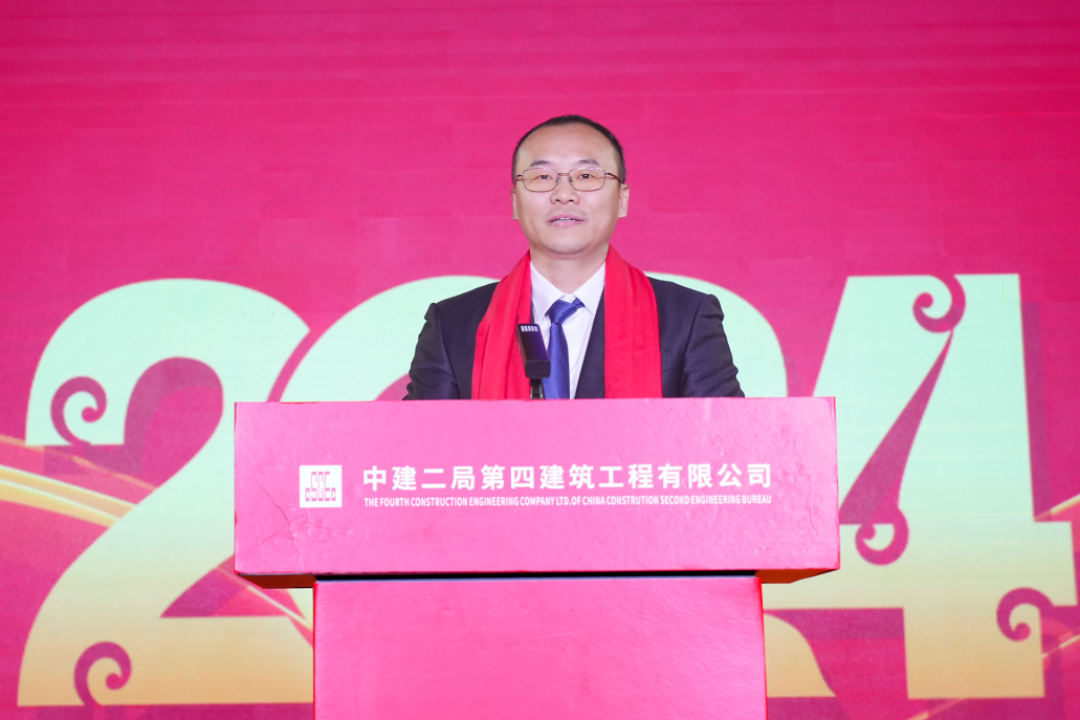 公司黨委副書記、總經理高安培發表致辭,他向為公司發展做出突出貢獻的廣大職工及家屬致以崇高的敬意,向奮戰在項目一線的各位同事表示親切的問候!他表示,2023年是全體四公司人迎難而上、奮發圖強的一年。這一年全體四公司人時刻緊跟公司黨政步伐,團結一心,同努力共奮斗,圓滿完成全年目標任務。2024年全體四公司人一定會繼續發揚迎難而上的斗志,堅定發展信心,為實現自己的價值而努力,為公司更加美好的未來而奮斗,不斷開創公司高質量發展的新局面。