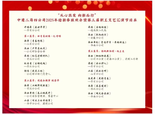 宮麗艷發表致辭,她向參加本次活動的各位領導、職工朋友們表示衷心的問候,向依然奮斗在施工一線的四公司干部職工和工友們致以崇高的敬意!她表示,多年來中建二局四公司扎根濱海新區,承建多項重點工程,為新區的經濟建設做出了重要貢獻。今天的2025年迎新春聯歡會暨第三屆職工文藝匯演,既是中建二局四公司情系職工發展、豐富職工業余文化生活的具體舉措,也是展現企業活力和企業實力的重要窗口。希望中建二局四公司2025年打造更多優質項目,以卓越的實力和口碑,在推動新區建設發展中展現更大作為,貢獻更大力量!