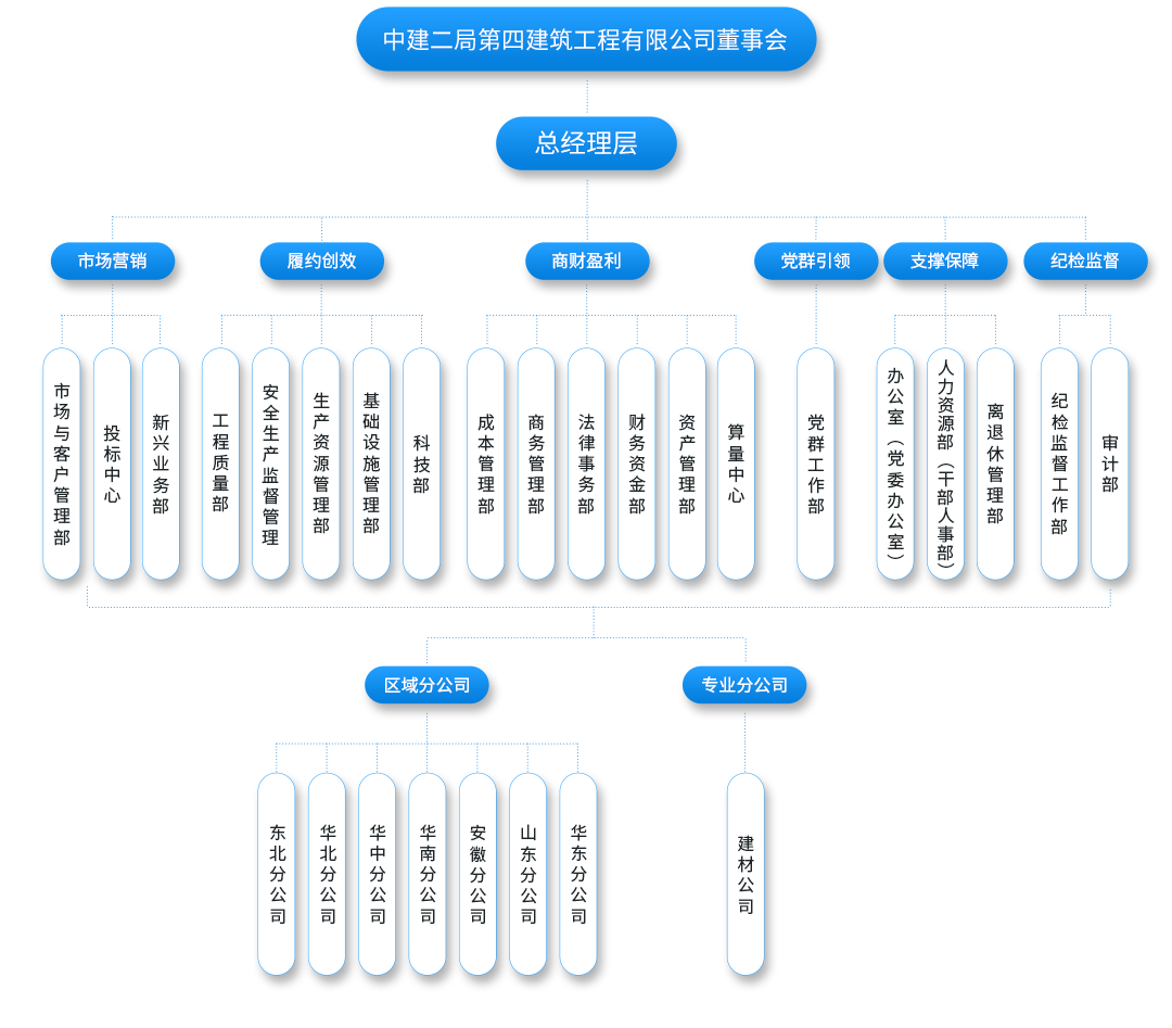戰略引領、把舵定向,六大體系協同聯動,涵蓋20個職能部門,全力助推公司管理轉型升級。為政府、社會、客戶提供卓越的建筑全產業鏈解決方案。